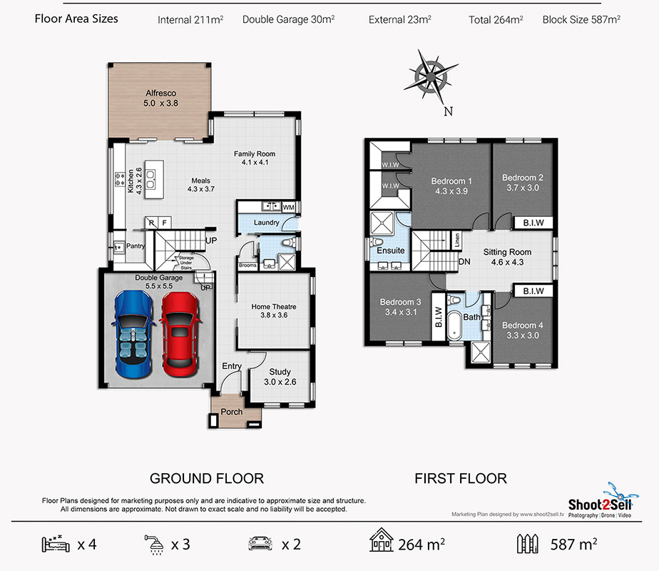 264 sq. m. Living Space 4 Bedroom 3 Bathrooms 2 Car Garage