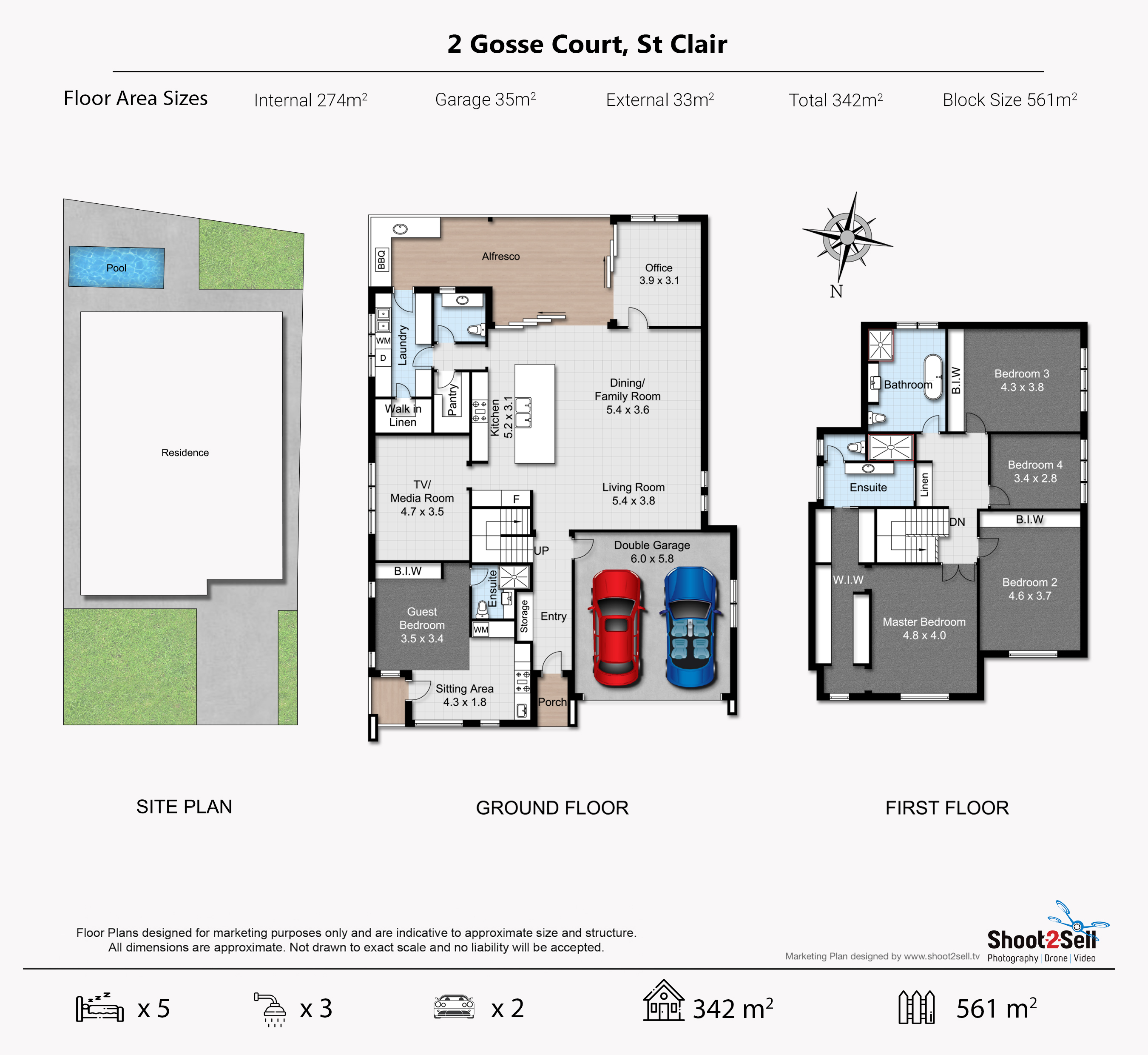 342 sq. m. Living Space 5 Bedroom 3 Bathrooms 2 Car Garage