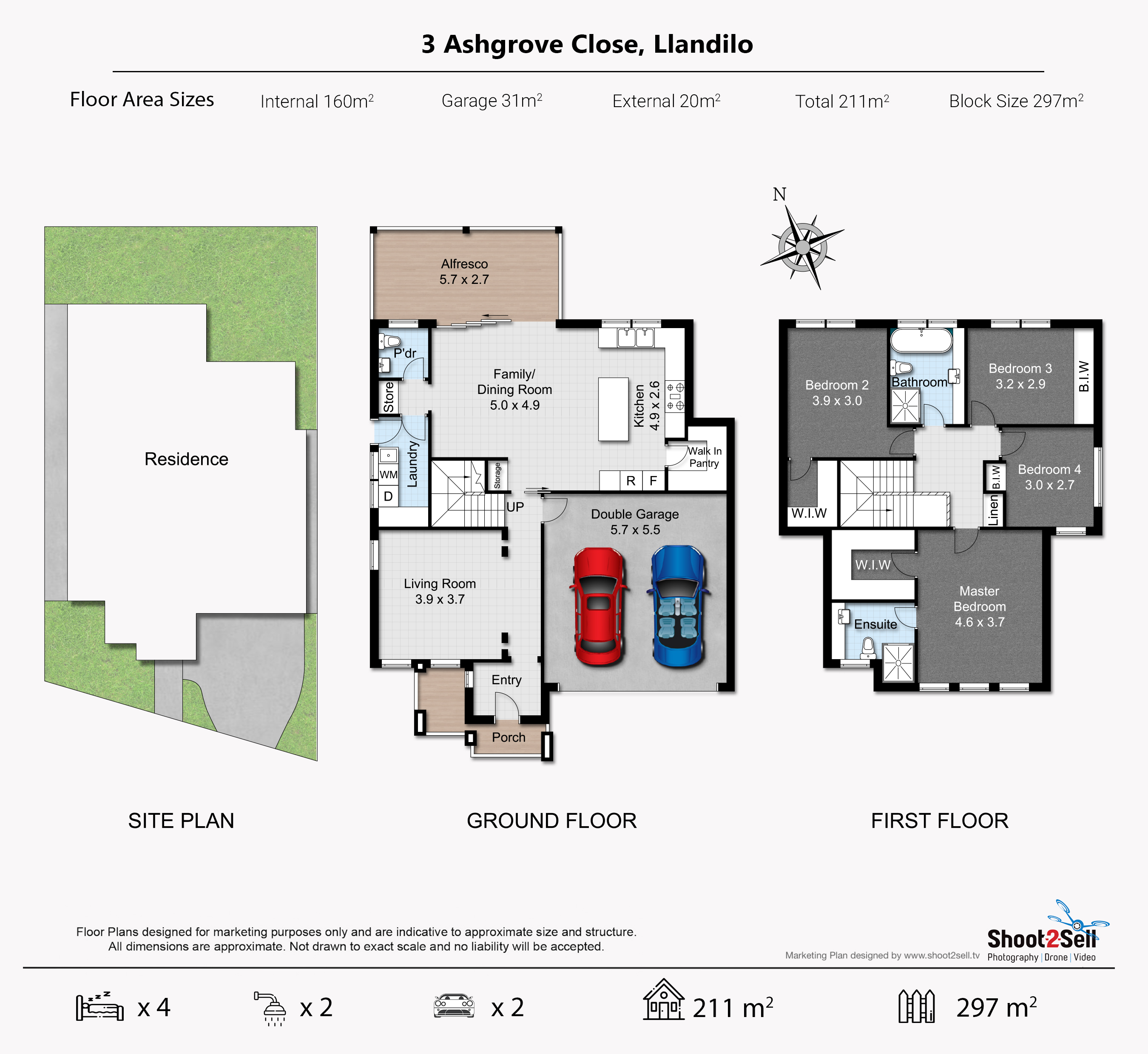 211 sq. m. Living Space 4 Bedroom 2 Bathrooms 2 Car Garage